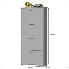 A Sapateira Sophie é um móvel projetado para armazenar calçados de forma organizada e discreta. Conta com quatro gavetas basculantes, tornando o acesso aos calçados fácil e prático, já que a gaveta se inclina para baixo quando aberta, permitindo que você visualize e retire os sapatos com facilidade.