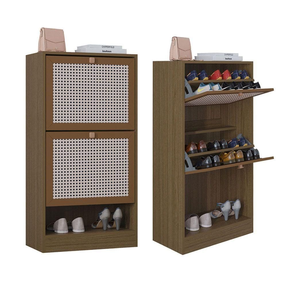 Por ser mais larga, a sapateira com 2 portas possui uma capacidade de armazenamento maior em comparação com as de uma única porta. Os modelos mais altos são similares a armários pequenos e comportam muitos pares, mas, caso você prefira, também há os mais compactos, da altura de uma cômoda.