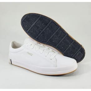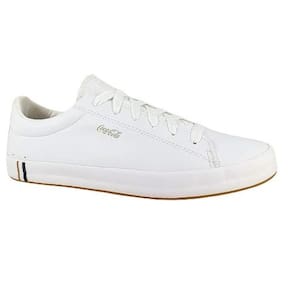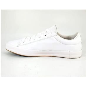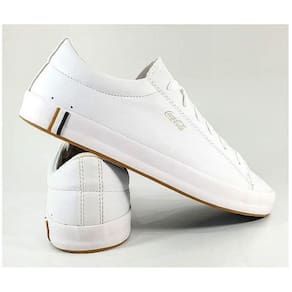 em momentos de lazer ou dia a dia. Com cabedal em couro, o calçado possui design básico na cor branca,