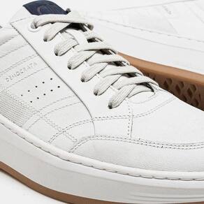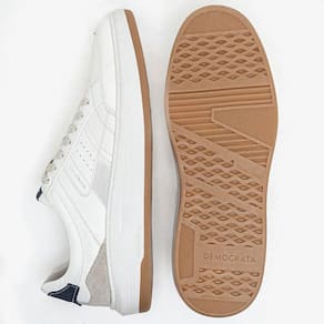 O Sapatênis Democrata Denim John Couro Branco Azul Casual é um produto robusto e moderno, se destacando pelo solado com caixa alta que possui grande durabilidade. Ele possui fechamento em cadarço de amarrar, palmilha macia de p.u com forro de tecido, bico arredondado, cabedal com recortes no couro e detalhe com o logo da marca na língua. A língua e o colarinho são acolchoados, possui detalhe em couro azul no calcanhar, e a sola é feita de T.R. e blaqueada, ajudando assim a aumentar sua durabilidade.
