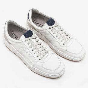 Sapatênis Democrata Denim John Couro Branco Azul Casual 334788