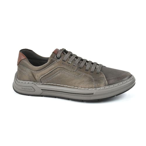 Sapatênis Democrata Denim Volp Couro Cinza Escuro Elástico Casual 334794