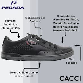Assim como toda a linha Small da Pegada, esse tênis possui numeração especial, e foi desenvolvido para levar muito conforto e estilo para os pés das crianças, adolescentes e adultos. Ele é fabricado com a microfibra especial da Pegada, PGD Fibertech: material tecnológico de alta flexibilidade, leveza e resistência, que é muito similar ao couro e de qualidade superior aos demais sintéticos. A durabilidade e a resistência desse material é tanta que a microfibra é apontada como uma das matérias primas mais apropriadas para produção de calçados de segurança.