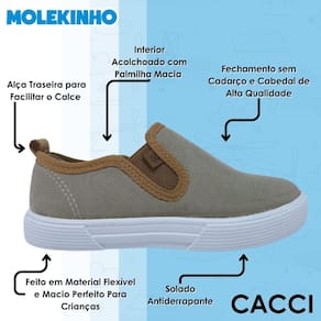 O Sapatênis Molekinho é a escolha certa para meninos que valorizam conforto e estilo em qualquer ocasião. Com um visual moderno e acabamento bem trabalhado, esse modelo combina praticidade com um toque urbano que agrada desde os pequenos até os adultos que os acompanham.