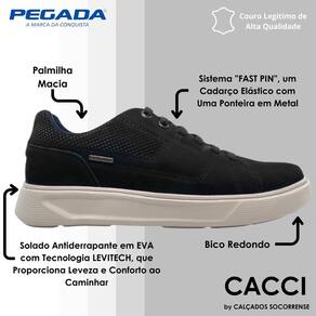 Esse tênis é super confortável e estiloso. Onde for vá leve, essa é a sensação que queremos passar na linha Levi, pois o solado é feito em Eva, com a nossa Tecnologia LEVITECH, pesando menos de 250 gr por pé, proporcionando muita leveza. Isso significa momentos de conforto extremo a qualquer hora. E não acaba por ai, o modelo ainda possui o nosso sistema "FAST PIN", que é um cadarço elástico com uma ponteira em metal que permite o ajuste sem a necessidade de amarrar, trazendo muita praticidade na hora de calçar. Feito para o dia a dia do homem moderno, esse tênis é versátil, combina com diferentes propostas de looks e acompanha você desde o escritório até a viagem de fim de semana.