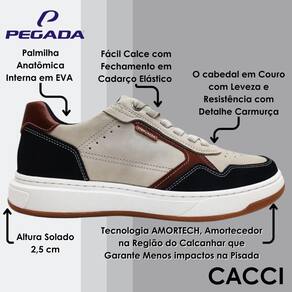O Sapatenis masculino da linha Ways da Pegada é a escolha certa para quem busca estilo, praticidade e conforto absoluto em cada passo. Com um design moderno e versátil, ele se adapta a diferentes ocasiões com facilidade, combinando com produções mais casuais sem abrir mão da elegância. Produzido em material de alta qualidade, esse modelo entrega durabilidade, resistência e maciez, garantindo o bem-estar do início ao fim do dia. O destaque fica por conta da palmilha com Tecnologia AMORTECH BLUE MEMORY FOAM, que se molda aos pés, aliviando impactos e proporcionando uma pisada leve e confortável, especialmente na região do calcanhar.