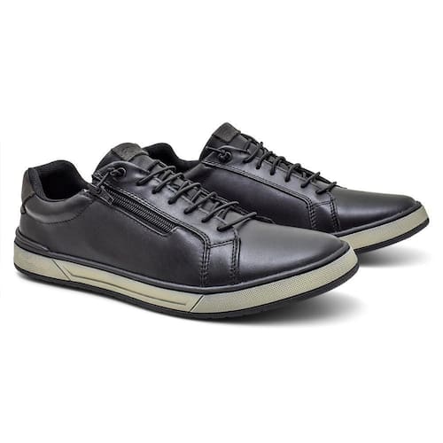 Sapatênis Masculino Couro Casual Zíper Confortável - 39 - Preto