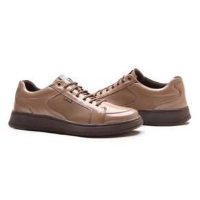 Sapatênis Masculino Couro Sola Alta Moderno Calprado Casual - 44 - Bege