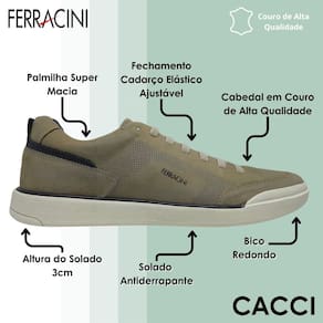 O sapatênis masculino Ferracini Star é a escolha ideal para quem busca versatilidade, elegância e conforto em um único calçado. Seu cabedal é produzido em couro de alta qualidade, conferindo durabilidade, maciez e um acabamento sofisticado que combina com looks casuais e urbanos. O design com bico redondo garante um visual moderno e atemporal, perfeito para quem quer se destacar sem abrir mão da discrição.