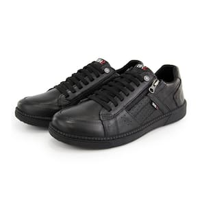 Sapatênis Masculino Ziper Footwear Cadarço Em Couro Preto - Preto - 43