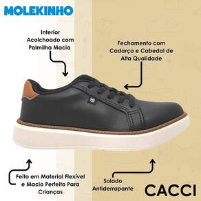 O Sapatênis Molekinho traz um visual moderno e elegante, ideal para meninos que gostam de estar bem vestidos em qualquer momento do dia. Com linhas limpas e detalhes discretos, esse modelo é versátil e combina com diferentes produções, oferecendo um toque de estilo sem exageros.