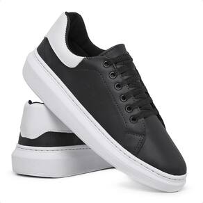 Sapatenis Tenis Masculino Espumado Moderno Palmilha EVA Com Cadarço Solado Resistente Conforto - Preto - 39