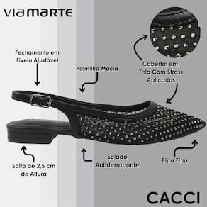 O modelo de encantar por onde for, com seu material em alta qualidade feito em tela forrado com detalhes deslumbrantes em strass, trazendo todo o charme e beleza ao calçado. Possui sua palmilha macia e confortável, com solado antiderrapante trazendo mais segurança ao caminhar. Acompanha seu saltinho de altura de 2,5 cm, que auxilia na comodidade dos pés.