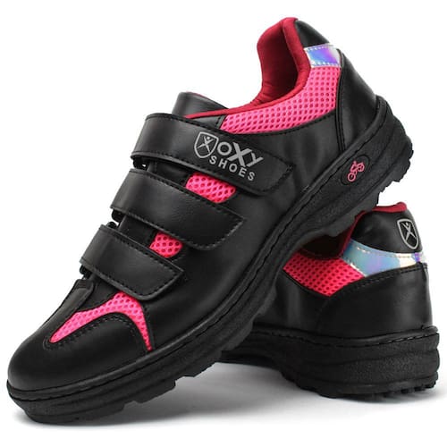 Sistema de fechos triplos (Tiras autocolantes) possibilitando melhor ajuste independente do formato do pé do ciclista.