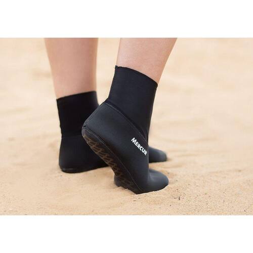 Confeccionada em Neoprene, oferece isolamento térmico ao mesmo tempo que protege o pé do contato com o solo, evitando bolhas e machucados, além de contar com o cano alongado que diminui a entrada da areia no pé.