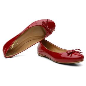 Sapatilha de Laço Verniz Feminina Bico Redondo Minimalista Palmilha Conforto Super Leve - 40 - Vermelho