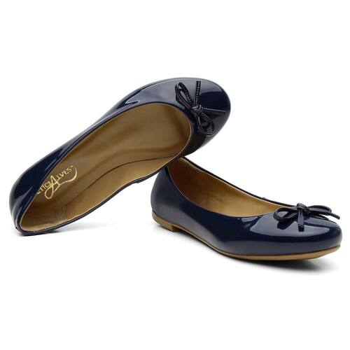 Sapatilha de Laço Verniz Feminina Bico Redondo Minimalista Palmilha Conforto Super Leve - 35 - Azul Marinho