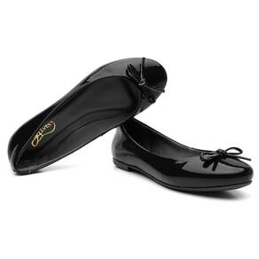Sapatilha de Laço Verniz Feminina Bico Redondo Minimalista Palmilha Conforto Super Leve - 40 - Preto