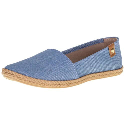 A Sapatilha Feminina Alpargata Moleca é confeccionada em Tecido Denim Fresh resistente com acabamento em costura, forro interno em têxtil, palmilha em PU e solado em borracha antiderrapante.