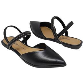 O bico fino alonga visualmente a silhueta e garante um ar refinado a qualquer produção. A tira com detalhes em brilho, combinada ao ecler decorativo, confere um toque glamouroso e atual ao modelo, perfeito para quem gosta de calçados com personalidade. A sola rasteira proporciona conforto e estabilidade ao caminhar, enquanto a tira maleável no calcanhar, sem fechamentos, garante praticidade ao calçar.