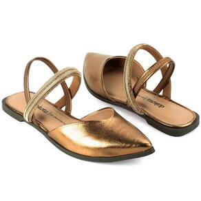 O bico fino alonga visualmente a silhueta e garante um ar refinado a qualquer produção. A tira com detalhes em brilho, combinada ao ecler decorativo, confere um toque glamouroso e atual ao modelo, perfeito para quem gosta de calçados com personalidade. A sola rasteira proporciona conforto e estabilidade ao caminhar, enquanto a tira maleável no calcanhar, sem fechamentos, garante praticidade ao calçar.