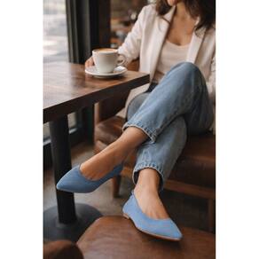 Conteúdo da embalagem:1 par de sapatilha feminina flat bico fino azul jeans