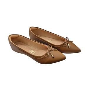 Sapatilha Feminina Casual Bico Fino Detalhe Laço Frontal Palmilha Macia Solado Borracha - 38 - Marrom