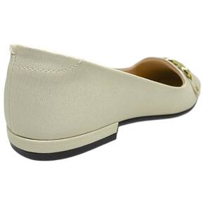 O enfeite metalizado na parte frontal é um charme à parte. Discreto e elegante, ele eleva o design com um toque moderno e sofisticado, sem exageros. Esse detalhe faz com que a sapatilha combine com diversos estilos, desde os looks mais básicos até produções mais elaboradas. Seja com jeans, alfaiataria ou vestidos leves, ela completa o visual com leveza e bom gosto.