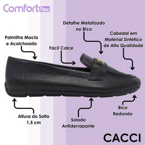 O solado antiderrapante, aliado à altura do salto de um centímetro e meio, oferece estabilidade e segurança ao caminhar, além de um leve toque de elevação que favorece a postura. A Sapatilha Comfortflex é a escolha certa para quem busca versatilidade, conforto absoluto e um visual delicado que nunca sai de moda.