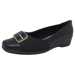 A sapatilha feminina anabela Comfortflex é a união perfeita entre elegância, conforto e funcionalidade. Desenvolvida com cabedal de material resistente e tecido lateral que se ajusta delicadamente ao formato dos pés, ela é especialmente pensada para quem busca alívio em regiões sensíveis como joanetes. Seu acabamento detalhado com adorno metalizado e strass no bico redondo oferece um toque sofisticado que valoriza qualquer produção.