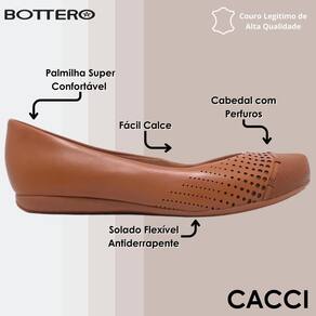 Sapatilha feminina Bottero confeccionada em couro atanado napoli. Modelo de bico redondo com perfuros, solado emborrachado antiderrapante com 1 cm de altura e forro em material têxtil.