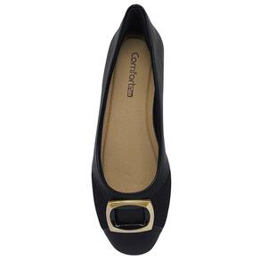 A sapatilha feminina da ComfortFlex foi criada para oferecer elegância e bem-estar ao longo do dia. O cabedal é confeccionado com material de alta qualidade e conta com detalhe metalizado, além de malha lateral que se adapta com suavidade aos pés, proporcionando conforto extra em áreas delicadas como a dos joanetes. O design com bico redondo complementa o visual com discrição e charme.