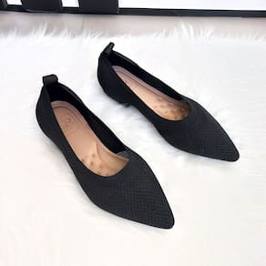 Sapatilha Feminina Malha Knit Tricô Bico Fino Preta Conforto - Preto - 33