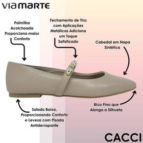 Essa sapatilha da Via Marte é uma opção charmosa e versátil para quem busca praticidade sem abrir mão do estilo. O modelo apresenta design delicado com bico fino que alonga a silhueta, trazendo um toque elegante ao visual. Seu diferencial está na tira sobre o peito do pé, que garante ajuste firme e seguro, além de contar com aplicações metálicas que adicionam modernidade e sofisticação ao calçado. O solado é baixo, proporcionando conforto e leveza para o uso diário, sendo ideal para combinar tanto com looks casuais quanto com produções mais arrumadas. É uma escolha perfeita para quem deseja unir conforto, praticidade e estilo em um único modelo.