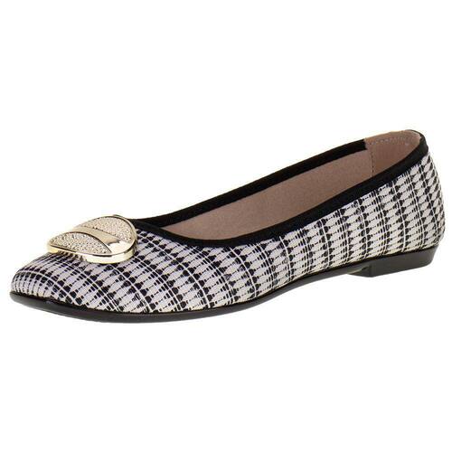 A Sapatilha Feminina Moleca é confeccionado em Tecido Geométrico e Lurex Resinado, material resistente, forrado em têxtil e detalhes em fivela no cabedal. A palmilha em PU acomoda os pés com muito conforto, enquanto o solado em borracha oferece segurança em cada passo.
