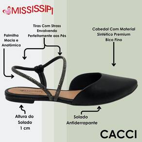A Sapatilha Mississipi é uma opção deslumbrante para adicionar um toque de glamour aos seus looks. Com um design monocolor e bico fino, essa sapatilha combina elegância e estilo de forma única. Possui uma tira fina que envolve o tornozelo repleta de strass, adicionando um brilho sofisticado e um toque de luxo ao calçado.