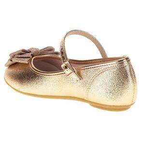 Sapatilha Infantil Feminina Molekinha é confeccionada em material metalizado Cairo e metal glamour, forrado em têxtil, com laço em glitter e fechamento por fivela no tornozelo. A palmilha em Soft pop acomoda os pezinhos, e o solado em borracha antiderrapante.