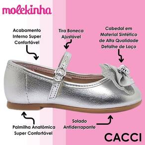 O solado antiderrapante completa o conjunto com eficiência, garantindo aderência em diferentes superfícies e promovendo mais firmeza em cada passo. Tudo isso faz da Sapatilha Molekinha 2106.1062 uma escolha inteligente para quem valoriza beleza, segurança e conforto no dia a dia das pequenas.