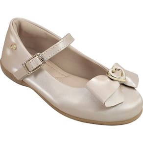 Sapatilha infantil feminina em sintético areia, super fofinho! Sapatilha com forro que auxilia na absorção do suor e espuma no calcanhar. A sapatilha Pampili possui palmilha C'alma, uma tecnologia desenvolvida com base na reflexologia podal, que tem benefi´cios para o corpo e mente, reenergizando os mesmos. Solado emborrachado leve, flexível e antiderrapante que dá segurança para as meninas! Aplique lateral Pampili em metal prata. Sapatilha feminina com tira que cruza no peito do pé e fechamento com fivela easy, sem pino, dando autonomia para a menina e praticidade no calce para a mamãe.