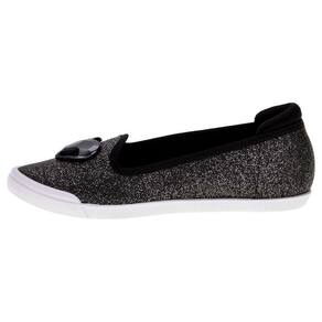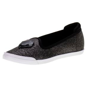 A Sapatilha Infantil Molekinha é confeccionada em Lina Glitter com acabamento em costura, detalhe de coração no cabedal, forro interno em têxtil, palmilha em EVA e solado em borracha antiderrapante.