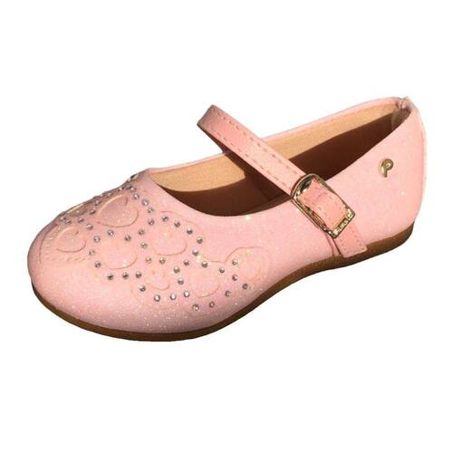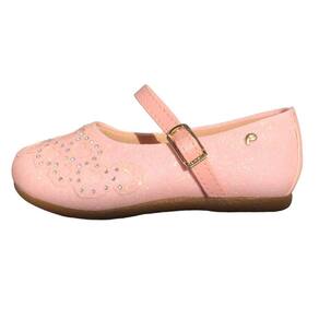 Sapato infantil menina em glitter , com detalhe frontal de corações e aplicação hotfix de pedras strass, dando brilho e romantismo ao look! Sapato infantil forrado com tecido que auxilia na absorção do suor e com espuma no calcanhar.
