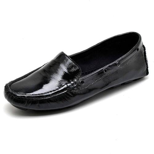 Sapatilha Mocassim Drive em Couro Verniz Feminino Solado Borracha Calce Facil Elegante Trabalho - 39 - Preto