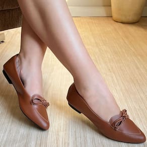 Design mocassim com bico fino para um look sofisticadoLaço decorativo que acrescenta um toque de charmePesponto que confere um acabamento eleganteEspuma acolchoada no calcanhar para um conforto prolongadoTabela de Medida do pé em cm