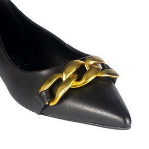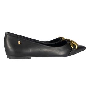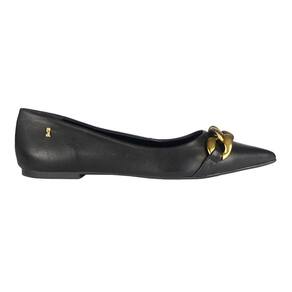 Sapatilha confeccionada em material nobre. Traz bico fino e possui detalhes de correntes no cabedal, adicionando um toque sofisticado e elegante ao modelo.