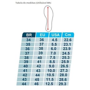 Fecho: Com tira cruzada em forma de "Y", o cabedal é sintético, utilizando quatro tipos de espessuras diferentes, são tão suave que fazem com que nem sinta a sapatilha nos pés. Com material fluorescente refletivo na região dos calcanhares, melhora a visibilidade, facilitando seu uso, tanto de dia como de noite