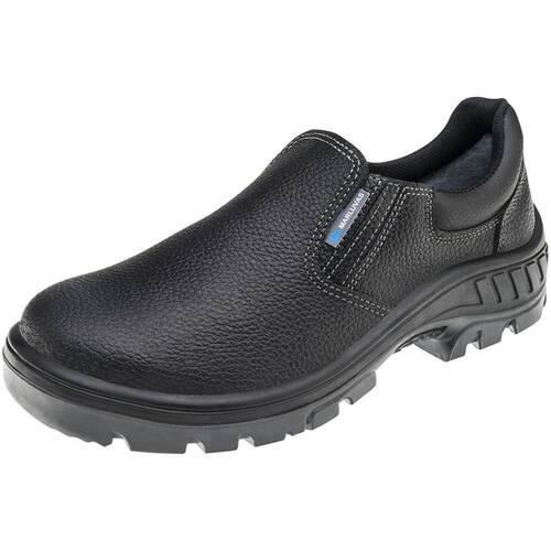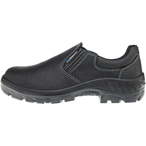 Sapato de segurança, confeccionado 100% em couro, colarinho soft acolchoado e fechamento em elástico com opcional biqueira de polipropileno ou aço. Palmilha de montagem em poliéster resinado e solado isolante em pu bidensidade injetado diretamente no cabedal com sistema de absorção de impacto.