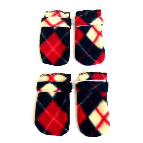 Sapato confeccionado em tecido soft vermelho; Revestido de solado emborrachado antiderrapante, ideal para cães que escorregam no piso liso; tiras aderentes para fechar com regulagem para melhor vestir em seu pet. Protege as patas em dias mais frios; Conjunto com 4 sapatinhos; Cor: xadrez vermelha; Tamanho: M Medidas aproximadas: Largura: 6 cm, Altura: 11 cm. Ideal para cães e gatos. Marca: Não Informado