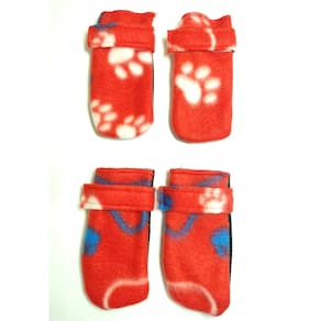 Sapato confeccionado em tecido soft vermelho; Revestido de solado emborrachado antiderrapante, ideal para cães que escorregam no piso liso; tiras aderentes para fechar com regulagem para melhor vestir em seu pet. Protege as patas em dias mais frios; Conjunto com 4 sapatinhos; Cor: vermelha; Tamanho: M Medidas aproximadas: Largura: 6 cm, Altura: 11 cm. Ideal para cães e gatos. Marca: Nica pet