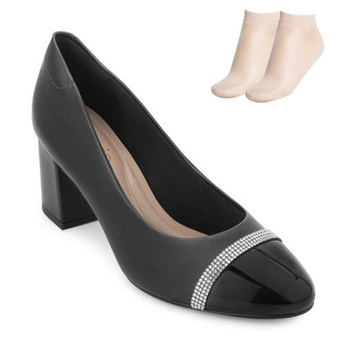 O Sapato Beira Rio é a combinação perfeita entre elegância e conforto. Confeccionado em material alternativo, traz um detalhe sofisticado em strass e verniz no bico, que adiciona charme e brilho ao visual. Seu interior têxtil proporciona maciez, enquanto a palmilha anatômica se ajusta ao formato dos pés, garantindo bem-estar durante todo o dia. Com salto de 7 cm, oferece altura com elegância e o solado de borracha antiderrapante proporciona segurança e estabilidade ao caminhar. Ideal para quem busca um sapato estiloso, confortável e versátil para diversas ocasiões. Acompanha um par de meias finas, ideal para compor um look completo e cheio de estilo para diversas ocasiões.