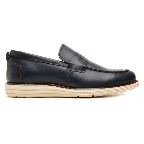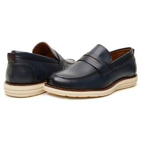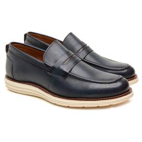 Sapato Casual Oxford Masculino Loafer Em Couro Marinho